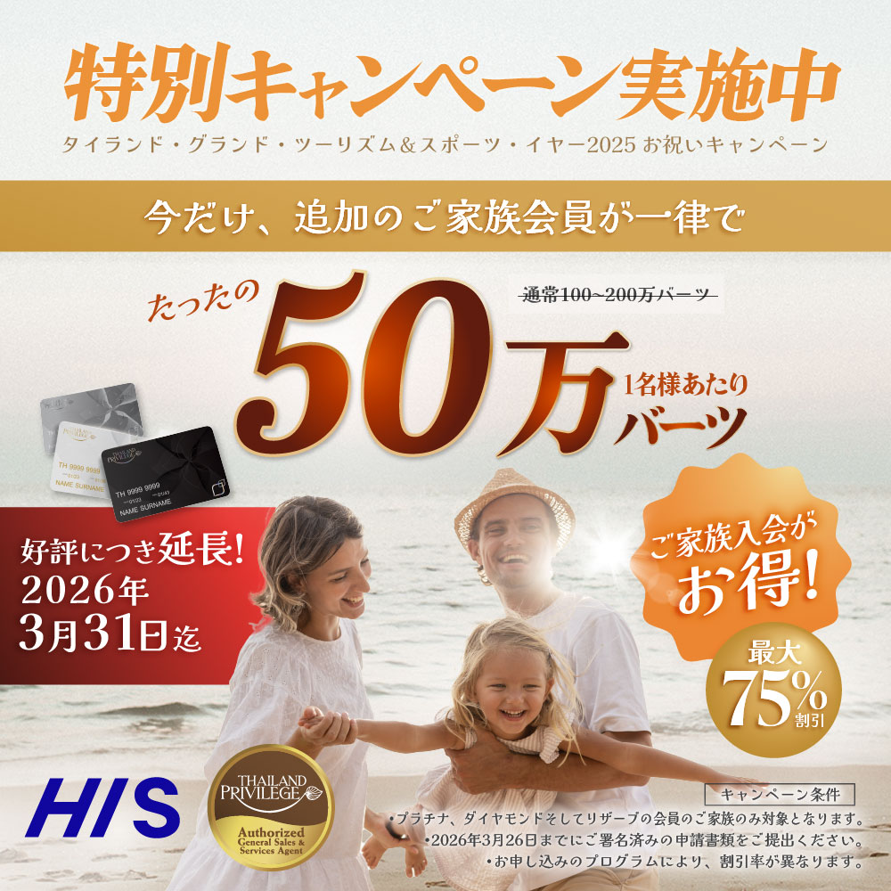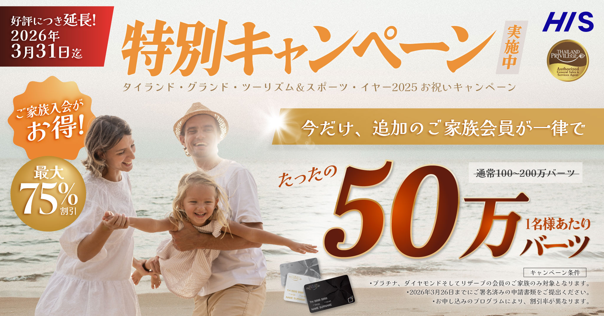 より多くのご家族がタイで長期滞在をお楽しみいただけるよう、特別キャンペーンを開始しました。
