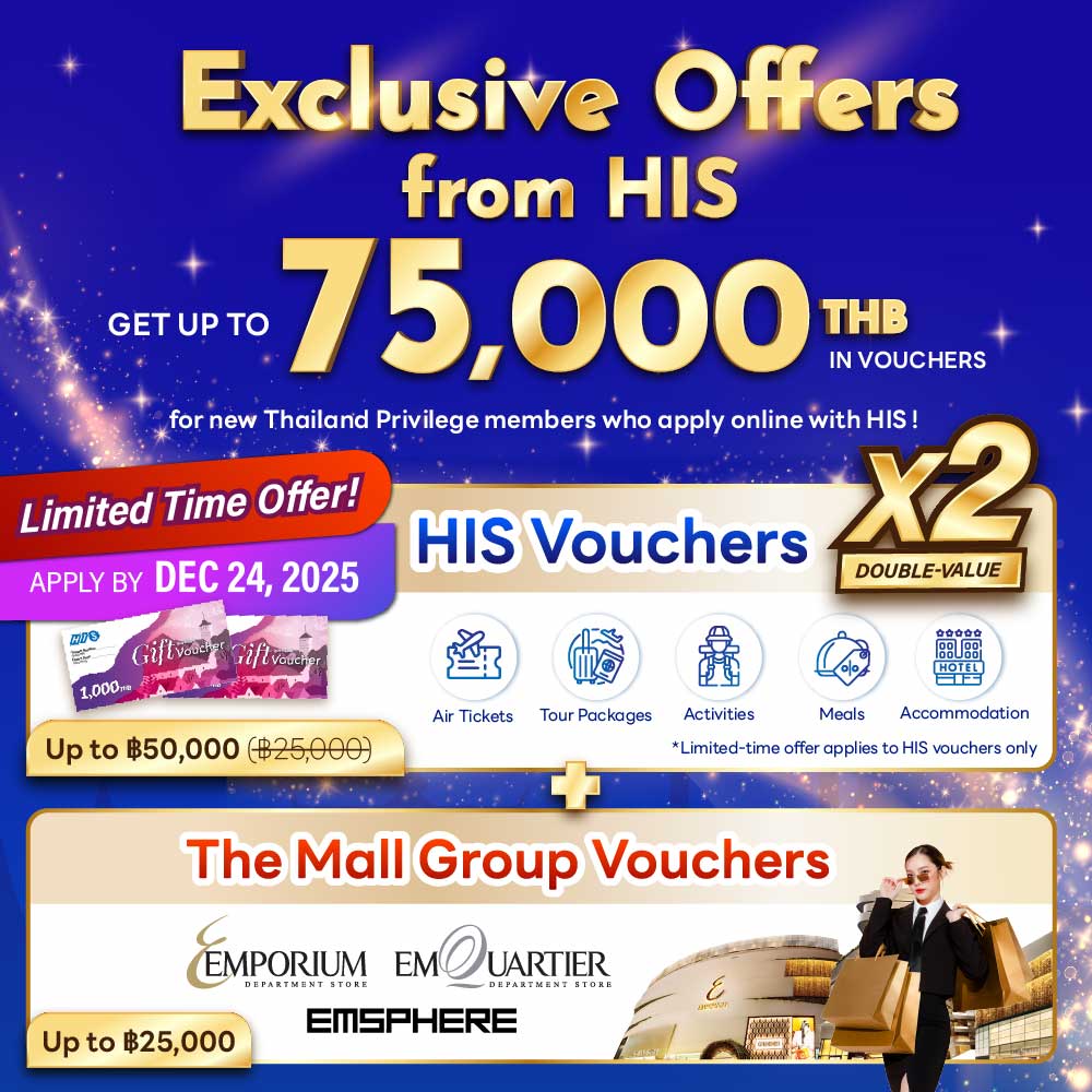 Apply Thailand Privilege with H.I.S. during 1 August – 24 December 2025