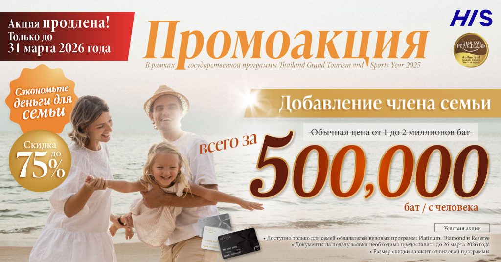 В честь празднования «Года туризма и спорта Таиланда 2025» компания Thailand Privilege Card Co., Ltd. представляет специальную промоакцию, призванную вдохновить семьи на долгосрочное проживание в Таиланде в рамках наших премиальных визовых программ.