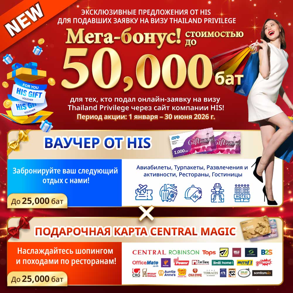 Специальный бонус от компании HIS только для обладателей визы Таиланд Элит