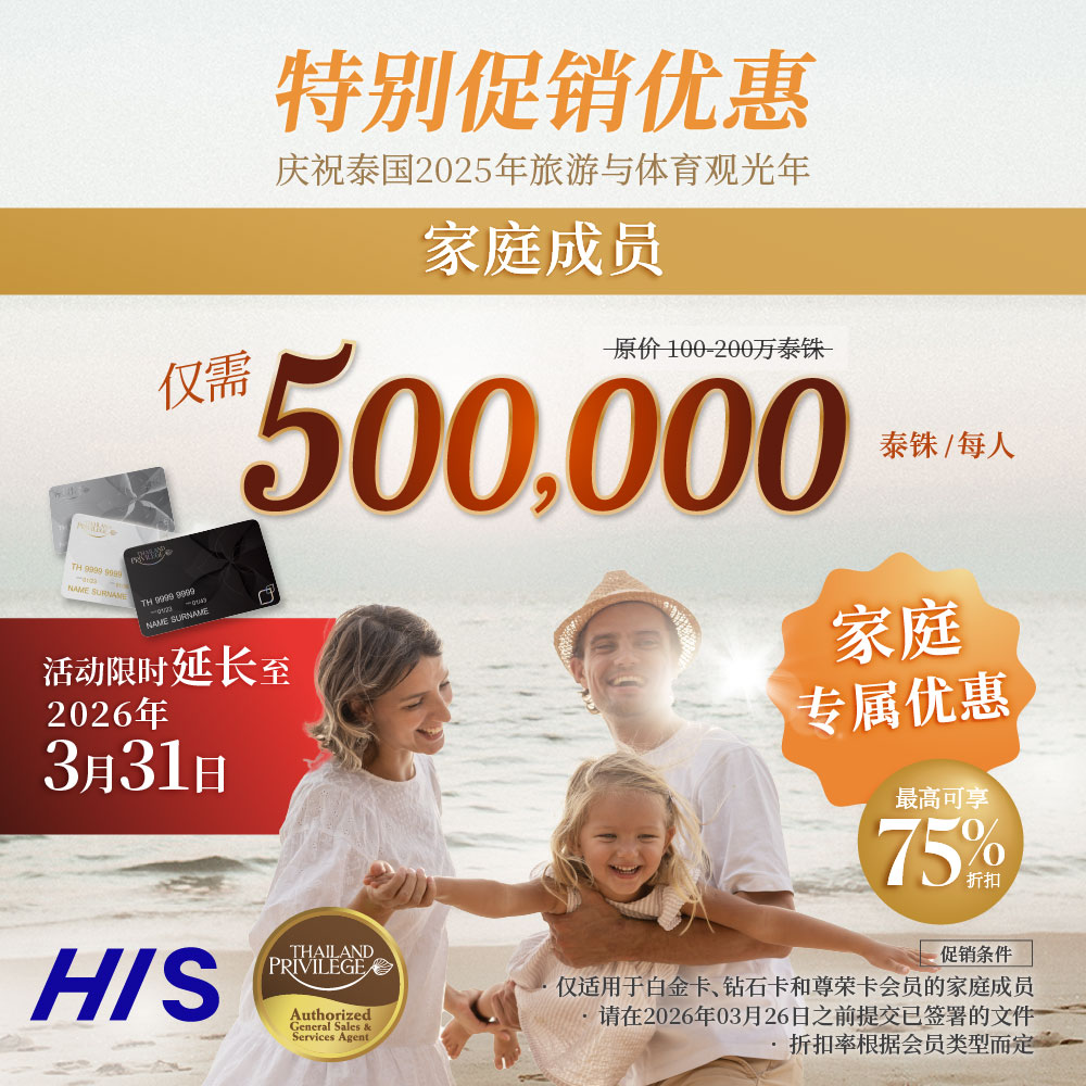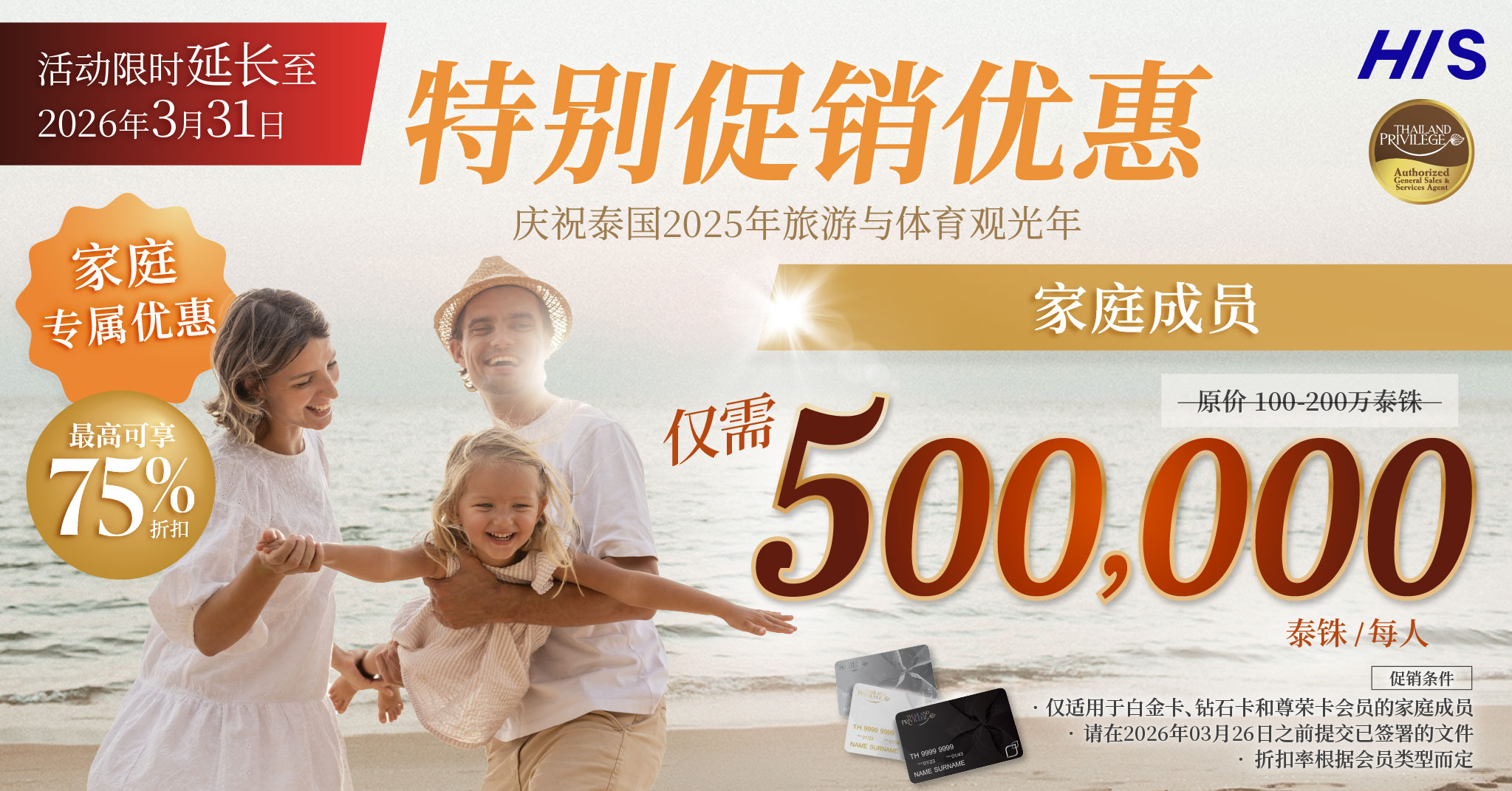 为庆祝 2025年泰国盛大旅游与体育年,Thailand Privilege Card Co., Ltd. 推出特别促销活动,旨在鼓励更多家庭通过我们的高端会员计划,享受长期居留泰国的尊贵体验。